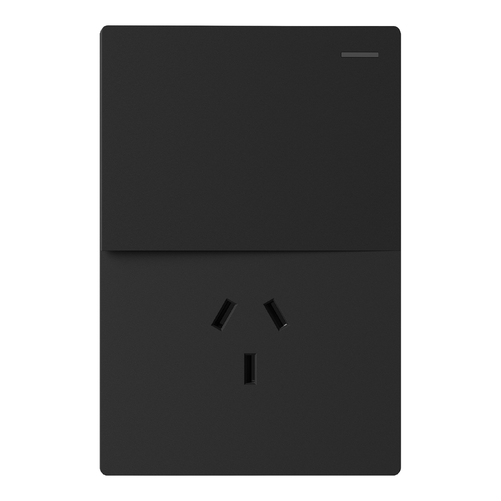 TECLA Y TOMACORRIENTE MILAN NEGRO MACROLED, 1 CANAL, AC 250V, 10A MAX. BASTIDOR METALICO