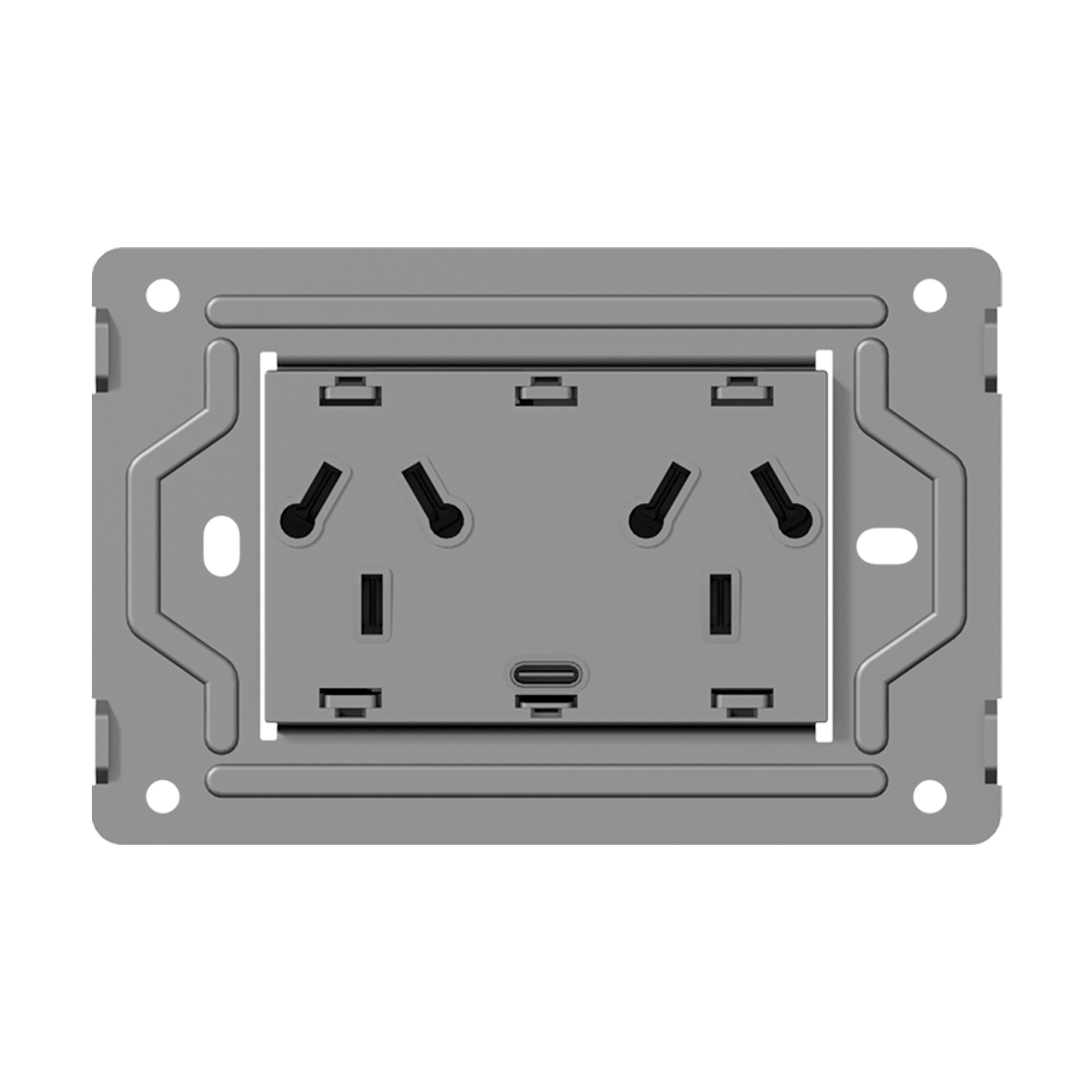 TOMACORRIENTE BI-NORMA DOBLE CON USB-C MILAN MACROLED, AC 250V, 10A MAX. BASTIDOR METALICO, SIN FRENTE