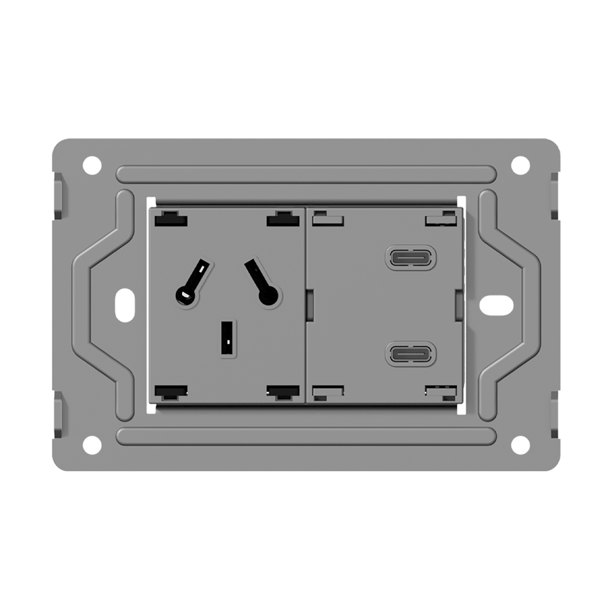 TOMACORRIENTE BI-NORMA CON DOS USB-C MILAN MACROLED, AC 250V, 10A MAX. BASTIDOR METALICO, SIN FRENTE