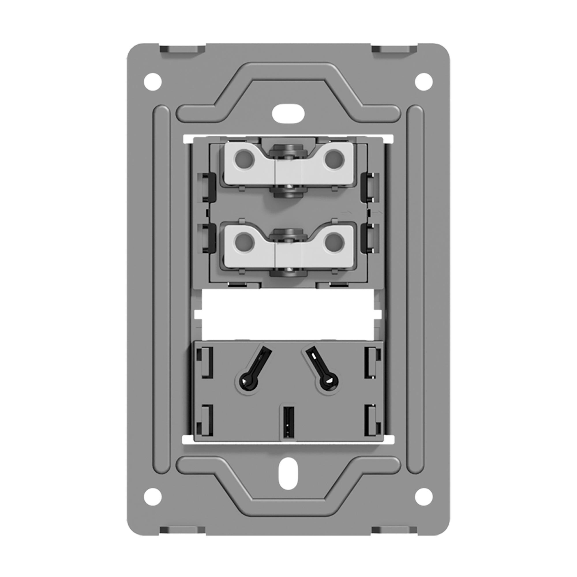 TECLA Y TOMACORRIENTE BI-NORMA MILAN MACROLED, 2 CANALES, AC 250V, 10A MAX. BASTIDOR METALICO, SIN FRENTE
