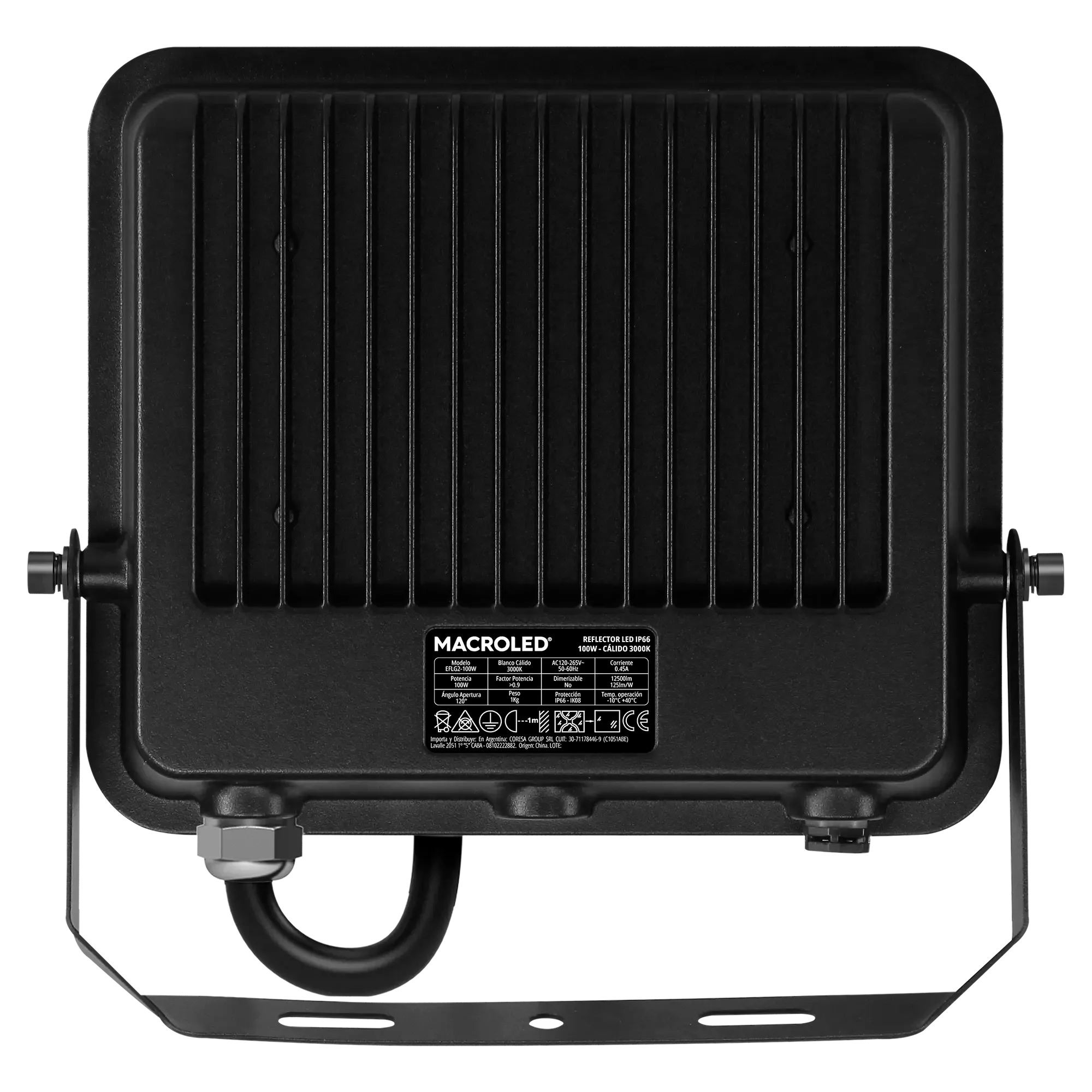 REFLECTOR LED MACROLED, AC160-265V, 100W, 3000K,FP 0.9, 110lm/W, CRI 80, BRAZO 45°